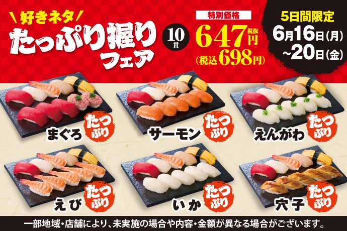 KOZOホールディングス株式会社の子会社である株式会社小僧寿しは、持ち帰りすし店「小僧寿し」にて、6月16日(月)~20日(金)の期間限定で『たっぷり握りフェア』を開催します。