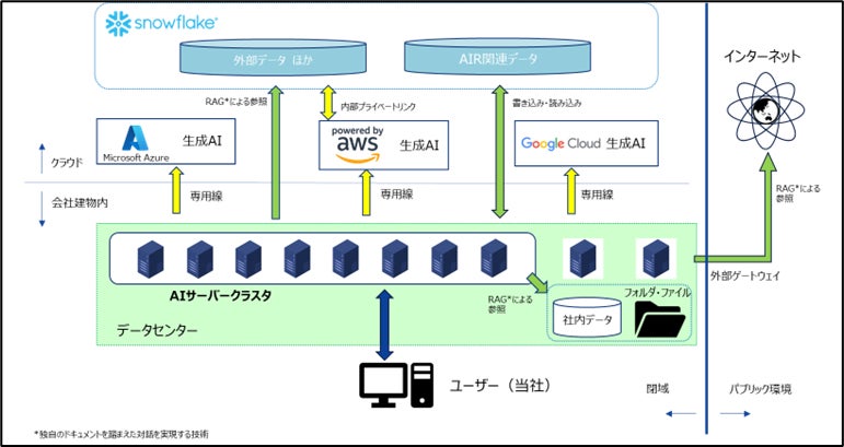 企業内部や特定の組織内部でのみアクセス可能なネットワーク接続(閉域接続)を利用して、Azure、AWS、Google Cloudの3大クラウドベンダーが提供するAIモデルをユーザーが自由に選択できます。