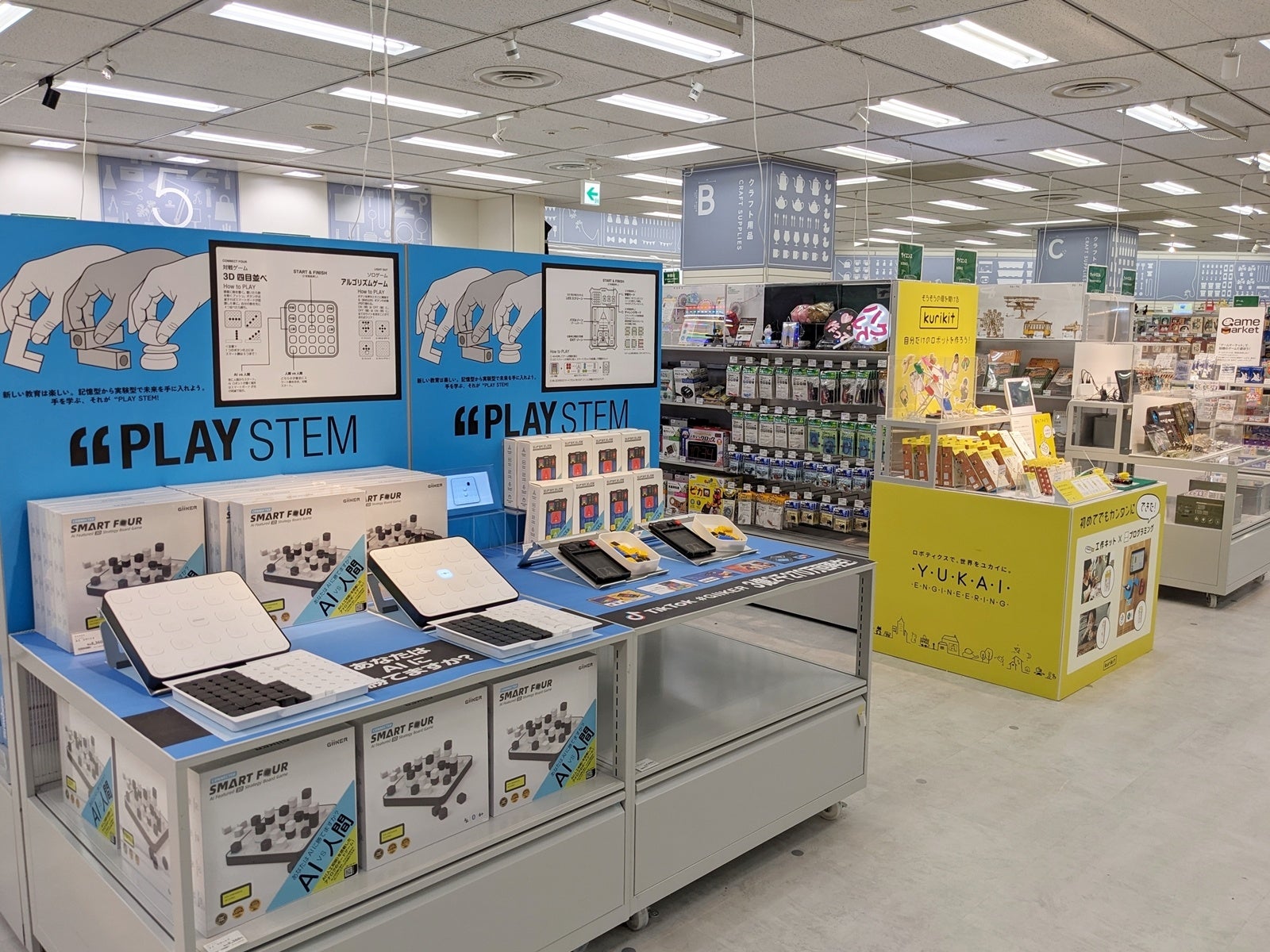 お客様が実際に、手を使い「ソウゾウ」「ワクワク」を体感していただけるコーナーです。電子工作キット、3Dウッドパズル、ミニチュアなど手を使って遊びながら学ぶことができるアイテムを集めました。