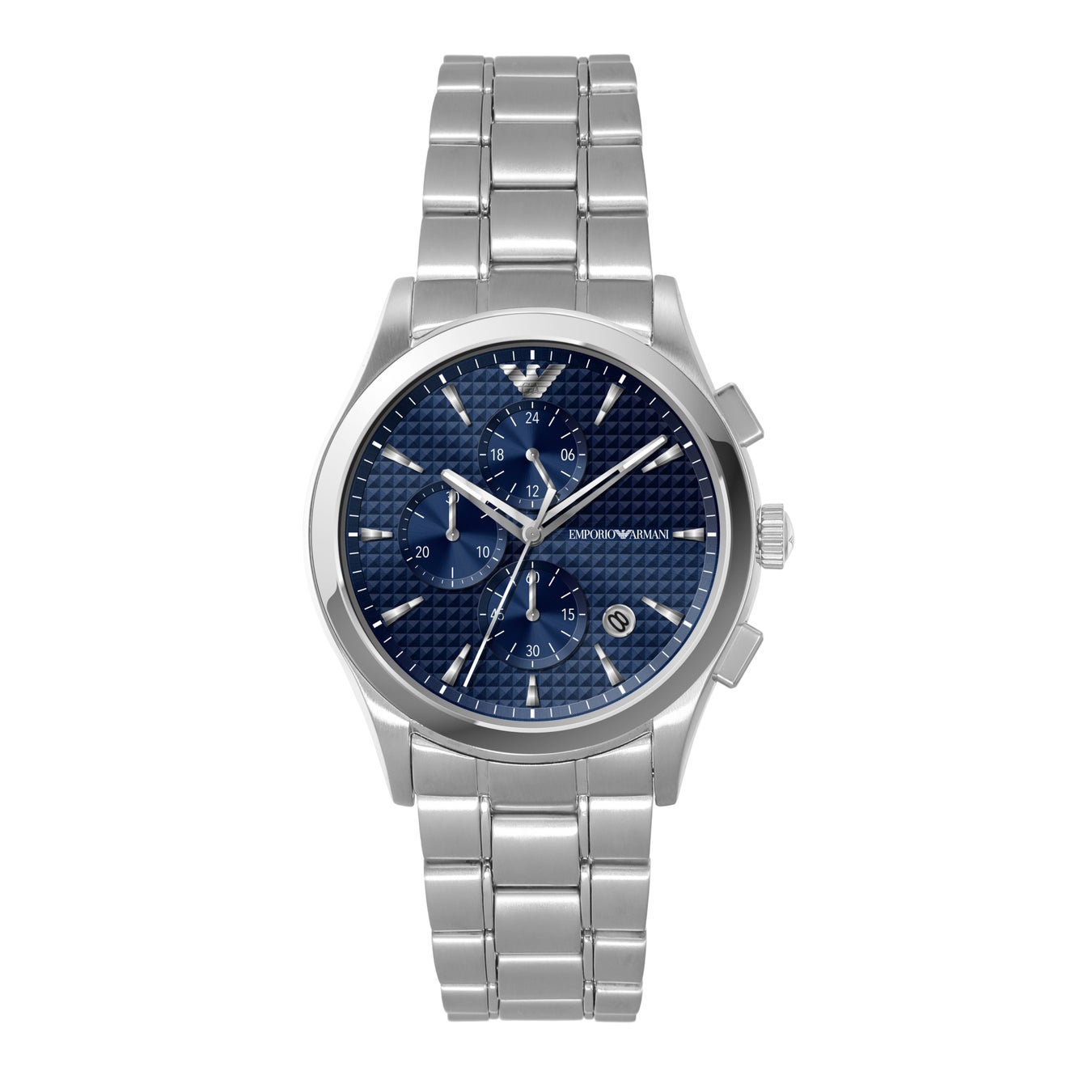 エンポリオ アルマーニでは、ブルー、グリーン、グレー、ブラックの4色のフェイスカラーで展開するクロノグラフタイプの時計をご用意しました。