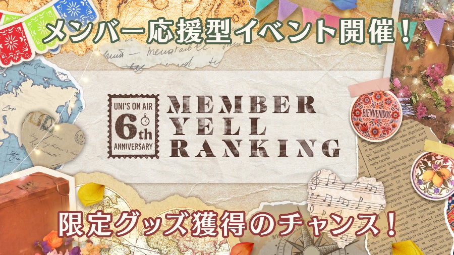 メンバー直筆のサイン入りタペストリー、ポストカード、チェキがランキング報酬となる、「6th ANNIVERSARY MEMBER YELL RANKING」を開催いたします。