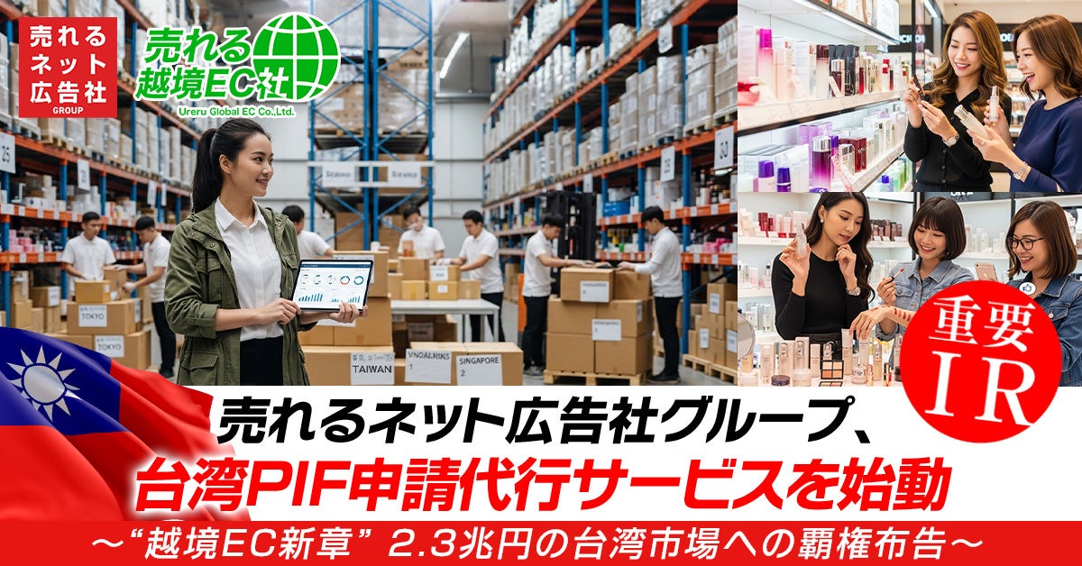 売れるネット広告社グループ、台湾PIF申請代行サービスを始動~“越境EC新章” 2.3兆円の台湾市場への覇権布告~