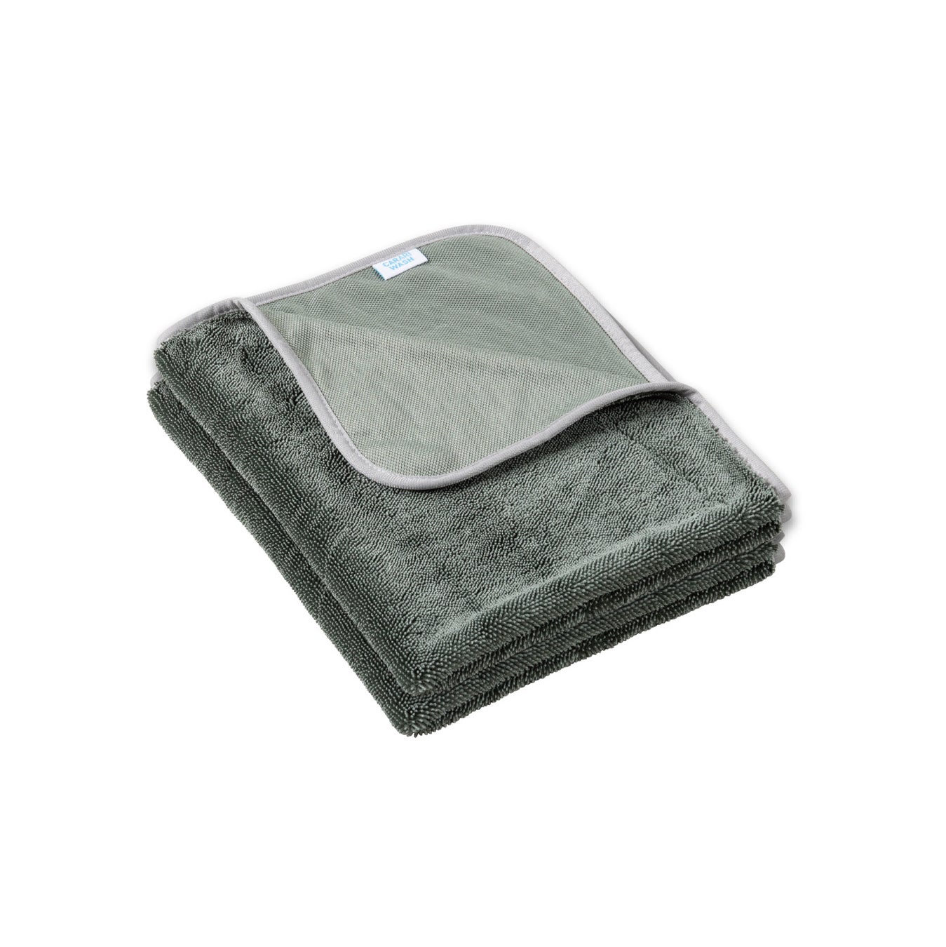 吸水力に優れたマイクロファイバーをさらにツイストパイル状に加工することで、繊維1本1本の表面積が大きくなり、水滴をすばやく効率的にキャッチ。タオルを滑らせるだけで大量の水を絡め取ることができるため、毛羽立ちや糸くずも残りにくく、拭き跡のない仕上げが可能になりました。