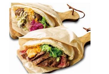 ◎商 品:アメリカンシェイク各種 770円~、ステーキピタパンサンド 1,500円 他