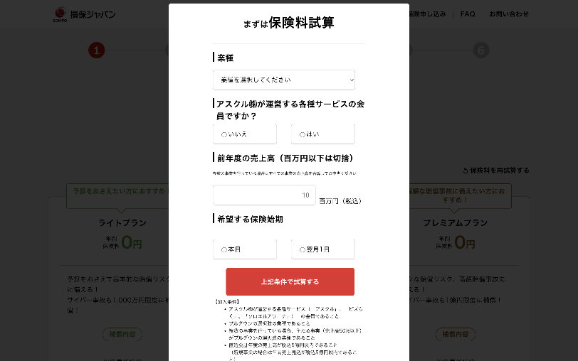 アスクルの事業者のお客さま※3は『ビズらく』を介して、事業活動上のリスクの「自分ごと化」、『お仕事あんしん保険』のプラン内容確認、保険料シミュレーション、保険加入手続きまで、Web上で簡単・シームレスに可能となります。