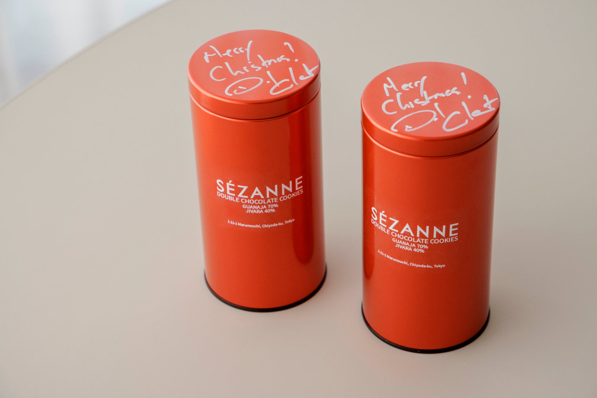 鮮やかな赤い限定缶には、総料理長ダニエルの手書きメッセージ入り。
