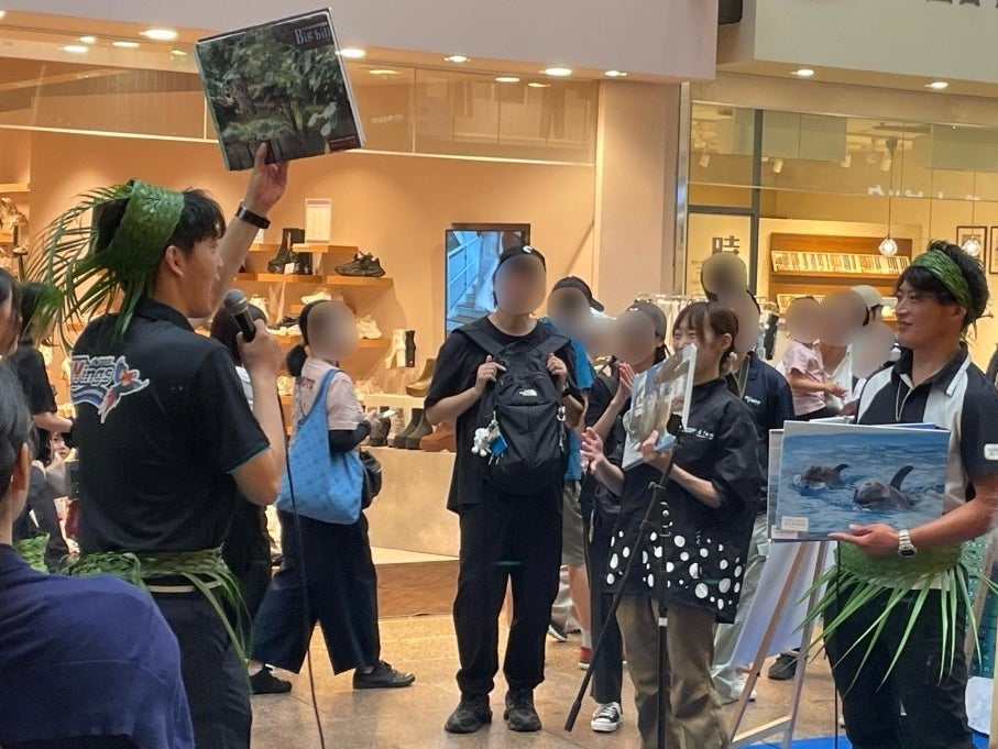 「推し生きもの」や「飼育員あるある」など、日常のリアルな一面をユーモアたっぷりに紹介しました。「生きものについ話しかけてしまう」「足音や鍵の音で誰が来たかわかる」など、思わず笑ってしまう“あるある”エピソードが飛び出し、普段は聞くことができない裏話にお客様も興味津々。道行く方も足を止めて耳を傾けてくださいました。