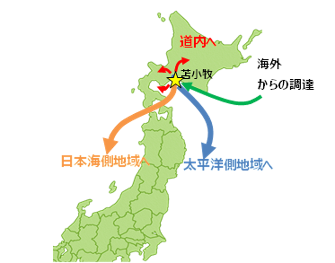 北海道では、次世代半導体工場や大型データセンターの立地が進展しており、将来的に北海道内のエネルギー需要は大きく増加していくことが見込まれています。洋上風力などの再生可能エネルギーの導入に加え、クリーン燃料としてのアンモニアについても高い需要ポテンシャルが想定されます。特に苫小牧は、国際拠点港湾として位置付けられる北海道の物流の要衝であり、日本海側および太平洋側の両方にアクセス可能な航路を有することから、内航船などを活用することで、拠点周辺の需要家にとどまらず道内外の需要家への供給も可能な有望な立地です。今回、北海道苫小牧を中心に低炭素アンモニアの大規模サプライチェーンを構築していくことで、日本全体のカーボンニュートラルの達成に貢献すべく、地域の皆さまのご理解をいただきながら、検討を進めていきます。