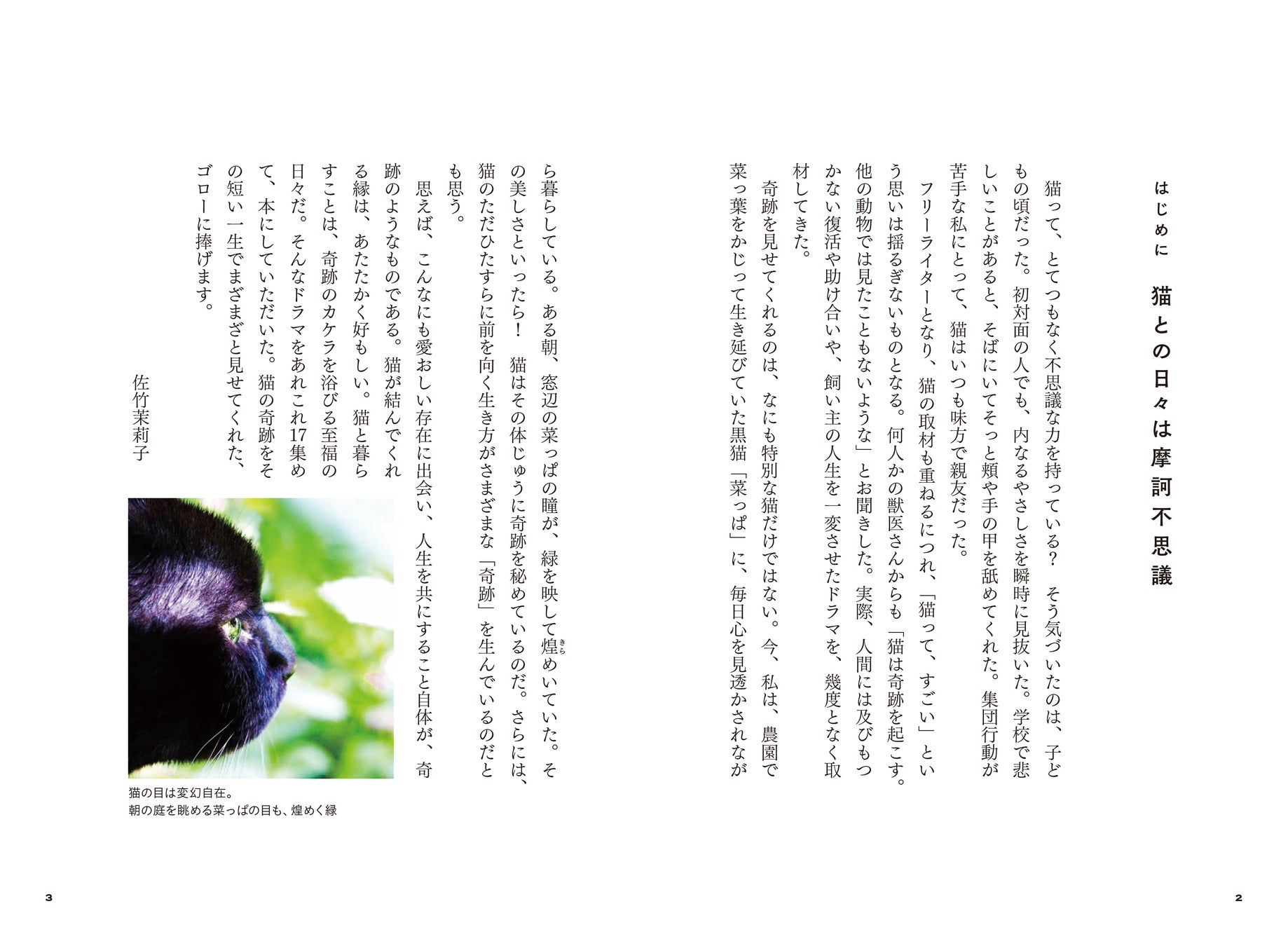 ※本書は著者が連載するフェリシモ「猫部」の人気ブログ『道ばた猫日記』と、朝日新聞系ペット情報サイトsippoの連載『猫のいる風景』、猫専門誌『猫びより』で紹介され話題となった猫たちのエピソードに新しい猫たちのエピソードも加え、「奇跡」をテーマに完全書き下ろしで17話お届けする実話集です。
