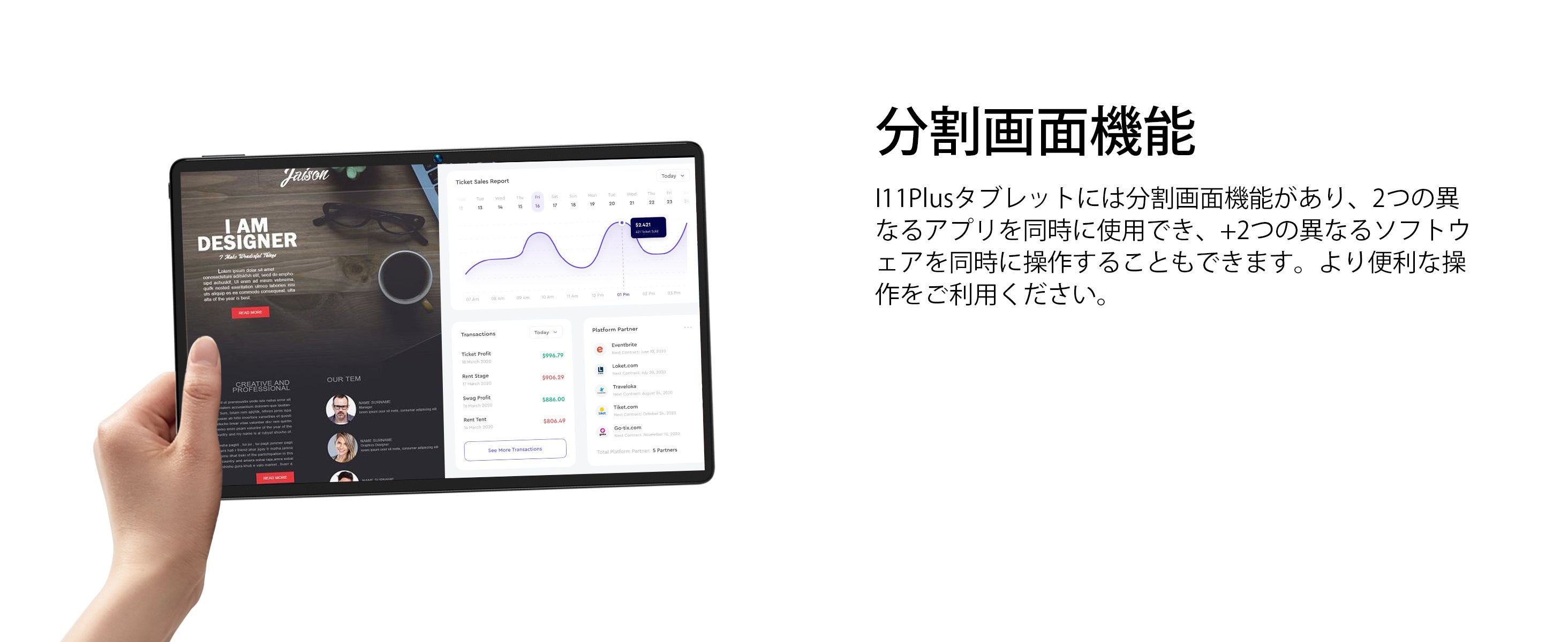 I11Plusには2画面表示機能があります。2 ページの同時操作に対応し、タブレットをより効率的に使用できます。より便利で迅速な表示方法をご利用することができます。重要な情報を見逃さないようにします。