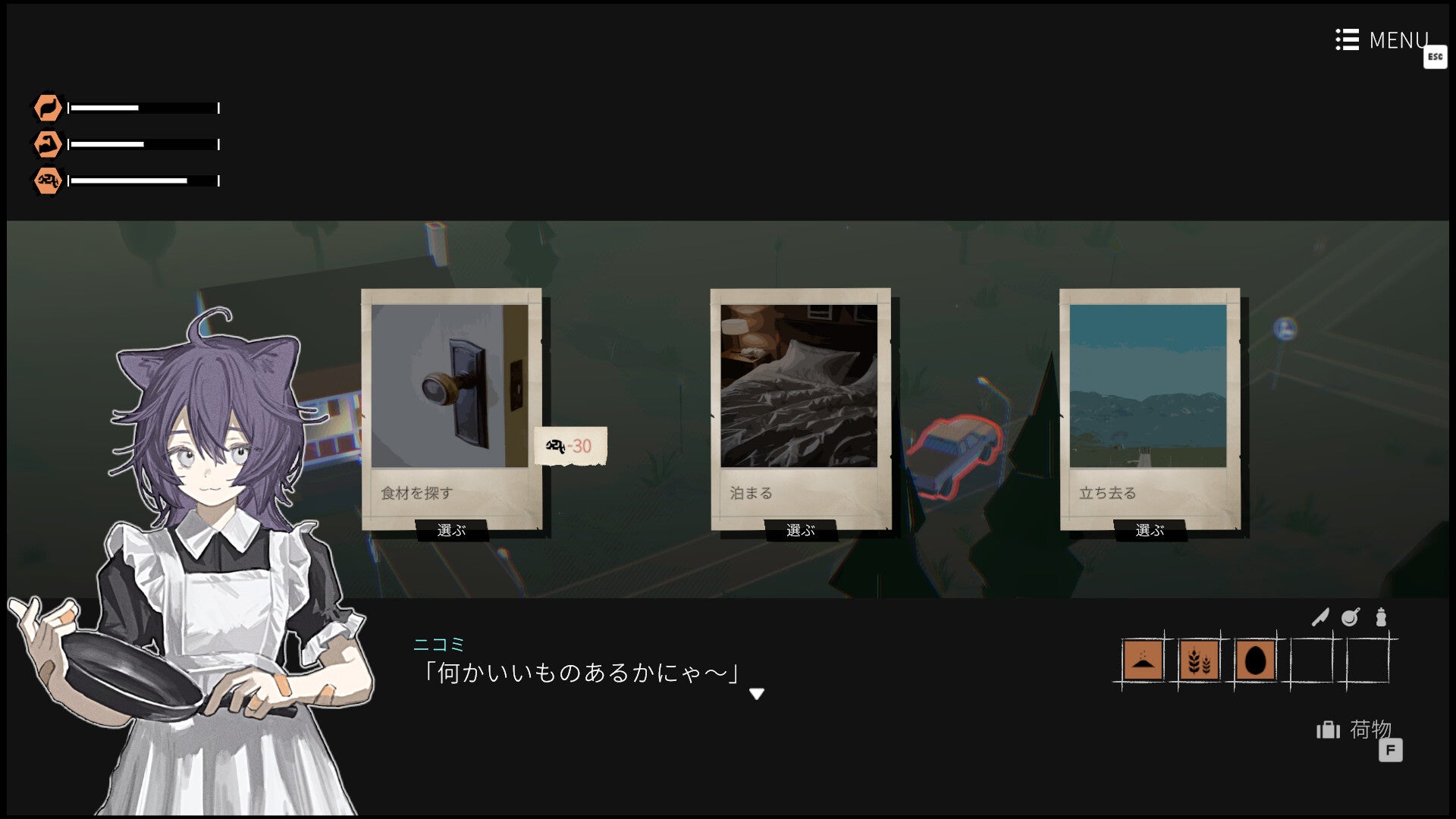 道を進む途中で食材を手に入れることがあり、料理に使うことができます。