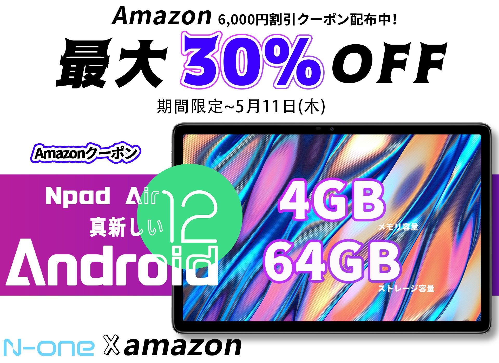 さらにAmazonより、N-one Npad Airに使える6,000円のクーポンを配布中です。