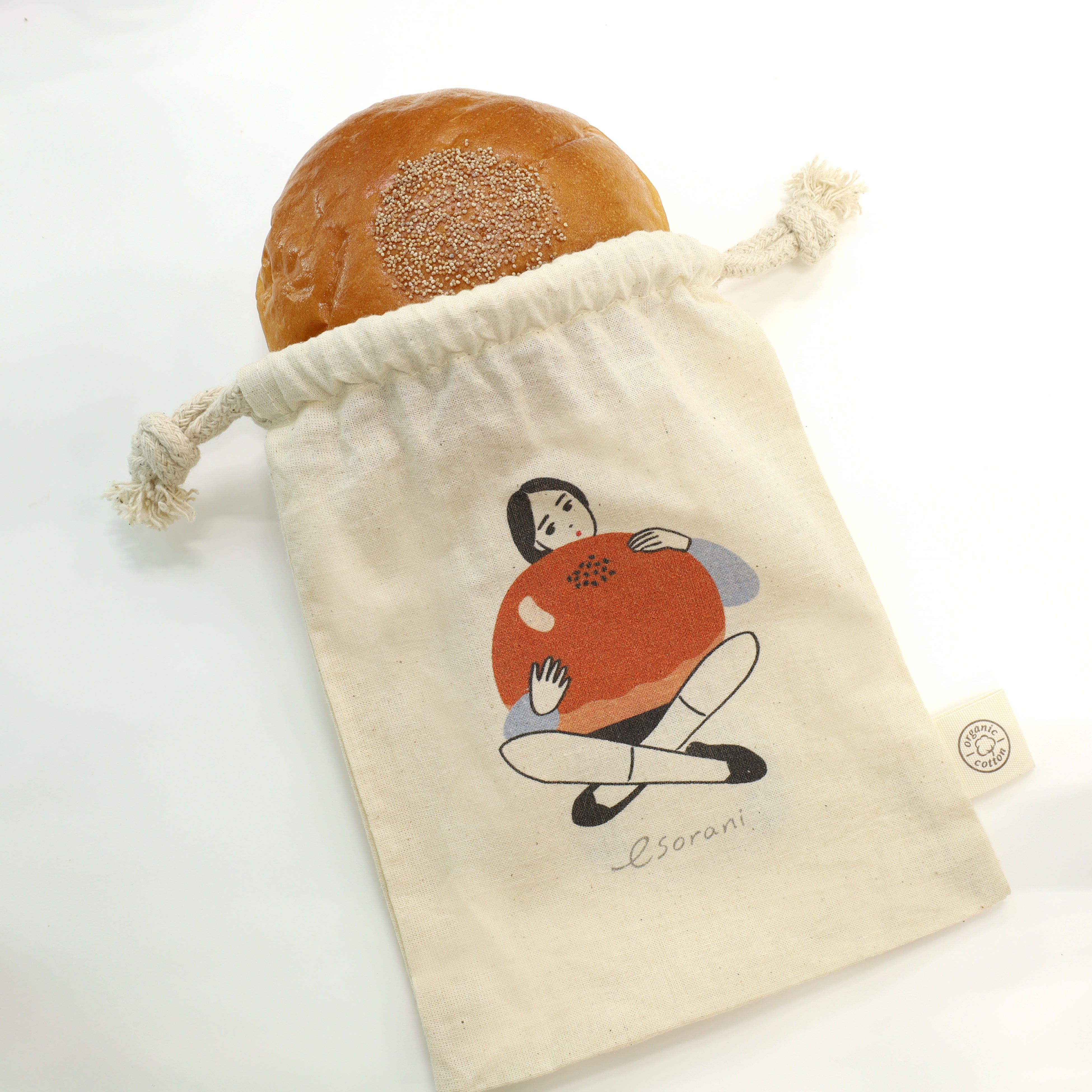 そんな「あんぱん」に想いを馳せ、“ものごとの奥行きを味わいたい”、“手仕事感のある、温かみを感じるものが好き” そんな方にesoraniの商品を手に取ってもらうきっかけを作れたら、という思いからこのコラボのノベルティ巾着『あんぱん袋』が誕生しました。