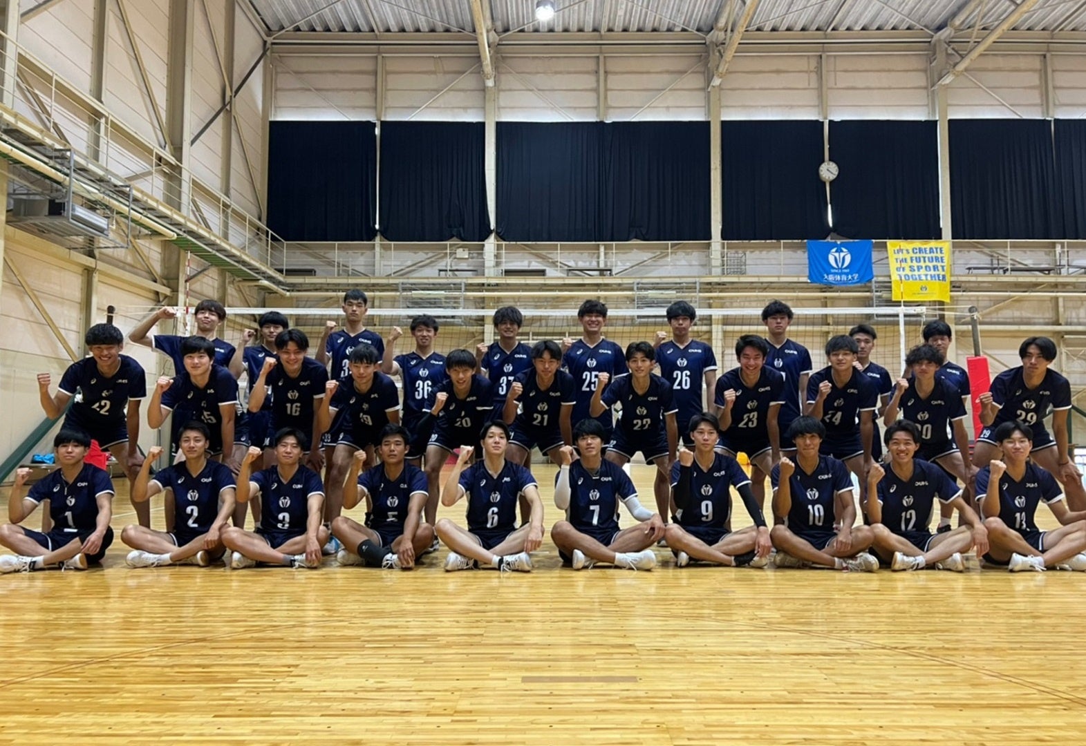 大阪体育大学男子バレーボール部は、昨年度の成績(全日本インカレベスト16)を越えることを目標に掲げ、チャレンジャー精神を忘れず挑戦し続けることをモットーに、日々明るくバレーボールに打ち込んでいます。