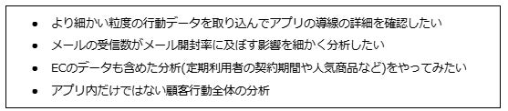 ・分析したい内容・目的を決め、仮説の洗い出し など