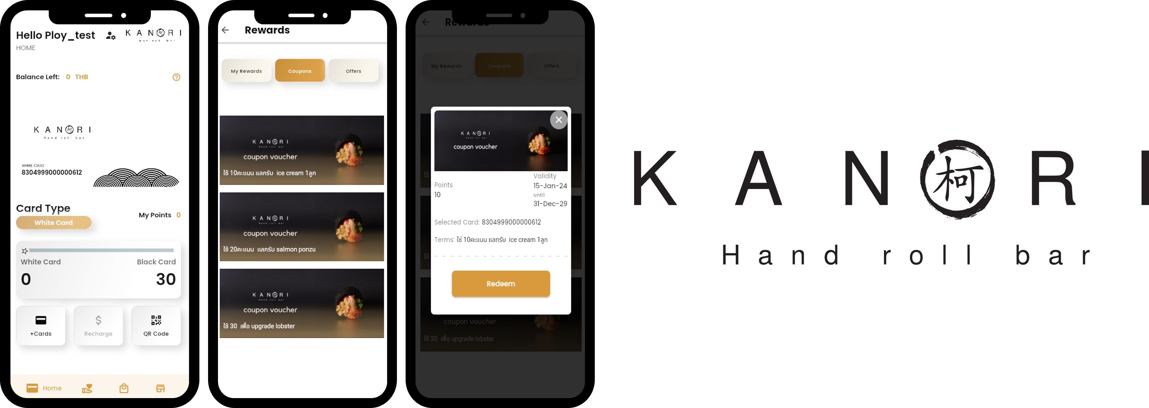 「KANORI」では、リピーター促進やロイヤルカスタマーの育成を目的に、CRMサービスとポイントシステムを備えた「KANORIメンバーシップカード」の提供を2024年2月に開始しました。1,000バーツの支払いごとに1ポイントを付与します。30ポイント貯めるとホワイトカードからブラックカードに昇格し、10%の割引を受けることができます。