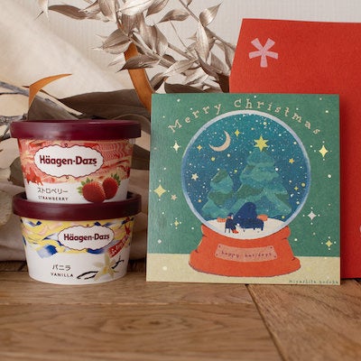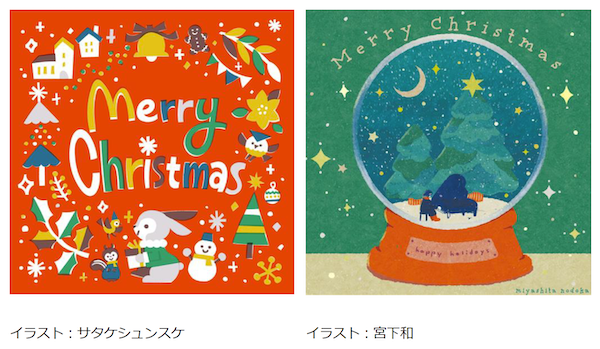 「giftee®」のギフトにはオシャレなギフトカードを添えることができます。今年はイラストレーターのサタケシュンスケさん、宮下和さんによるクリスマス限定デザインを提供しています。