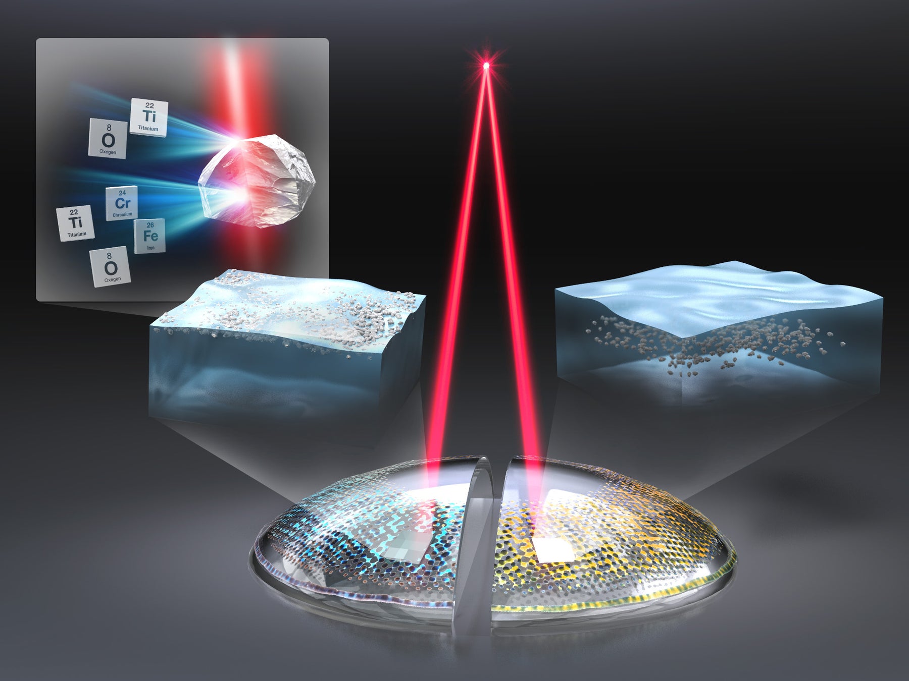 そこでメニコンでは、コンタクトレンズの高い性能を実現する素材構造の研究に活用している最先端研究施設(あいちシンクロトロン光センター(BL5S1)、大型放射光施設SPring-8(BL46XU))※4を利用し、市販カラコン製品の印刷層に含まれる顔料成分の分析法の研究を行いました。その結果、X線吸収微細構造法(XAFS) ※5という手法を用い、特殊な光(放射光)を直接レンズに照射することで、最表層に存在する顔料元素を簡便に識別することに成功しました。短時間での測定が可能なXAFS測定によるスクリーニングを行い、詳細な顔料位置を観察可能なTEMによる分析を併用することで、表面に顔料が集まるレンズを迅速かつ詳細に選別できるものと期待されます。