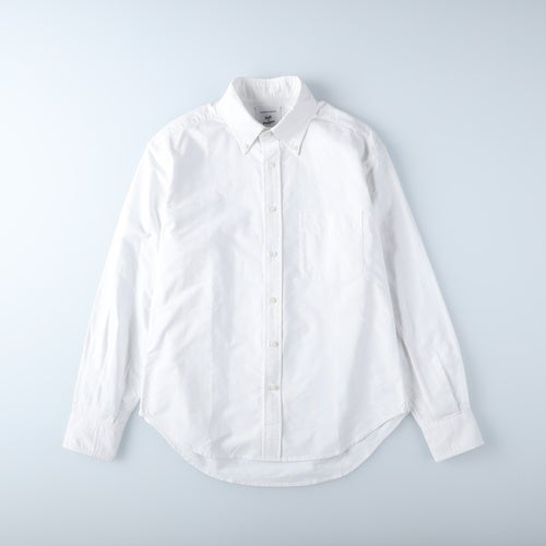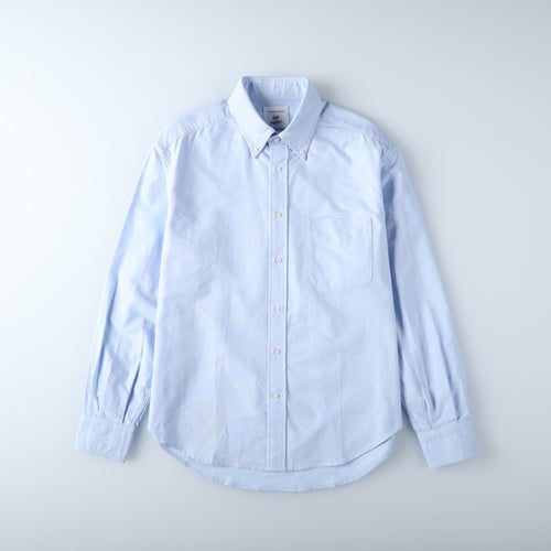 襟の形にこだわりました。ドレスではなくカジュアルに普段着用できるデザインです。通常経糸(タテイト)に細い綿糸である40番単糸、緯糸(ヨコイト)に太めの10番単糸を使用するのがオックスフォード生地です。S&Pでは緯糸に20番双糸を打ちました。計測上は10番単糸と同じ太さである糸ですが、2本を撚ることによりより丈夫な糸になります。