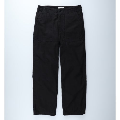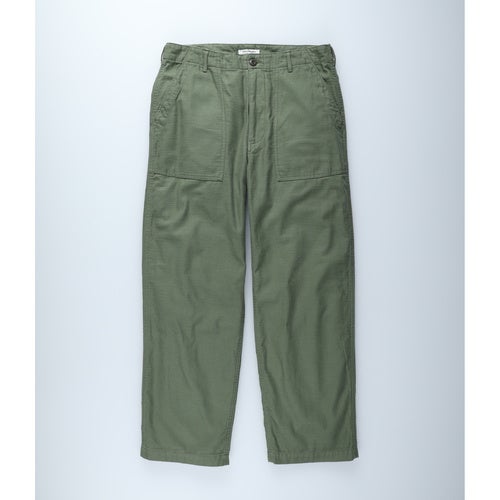 アメリカ軍のファティーグパンツをベースに、ウエスト・腰まわりのフィッティングはゆったりとしたシルエットに変更。生地は当時の風合いを再現するためにバックサテンを使用しています。