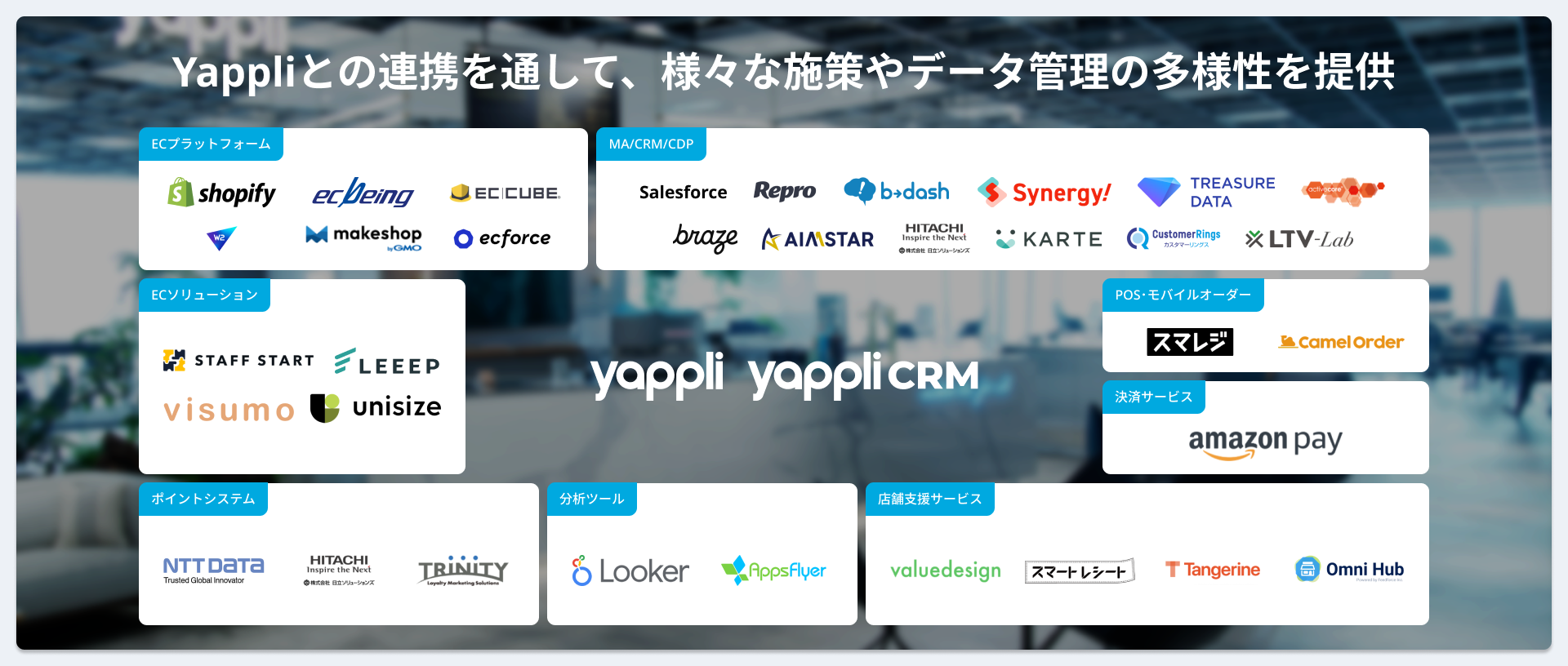 Yappliは、EC・アプリ・店舗というあらゆるチャネルの顧客体験を一つに統合する「OMO戦略のハブ」として進化を続けています。今後は、このリアルタイムなデータ連携をさらに活用し、企業のデジタル戦略を支援してまいります。