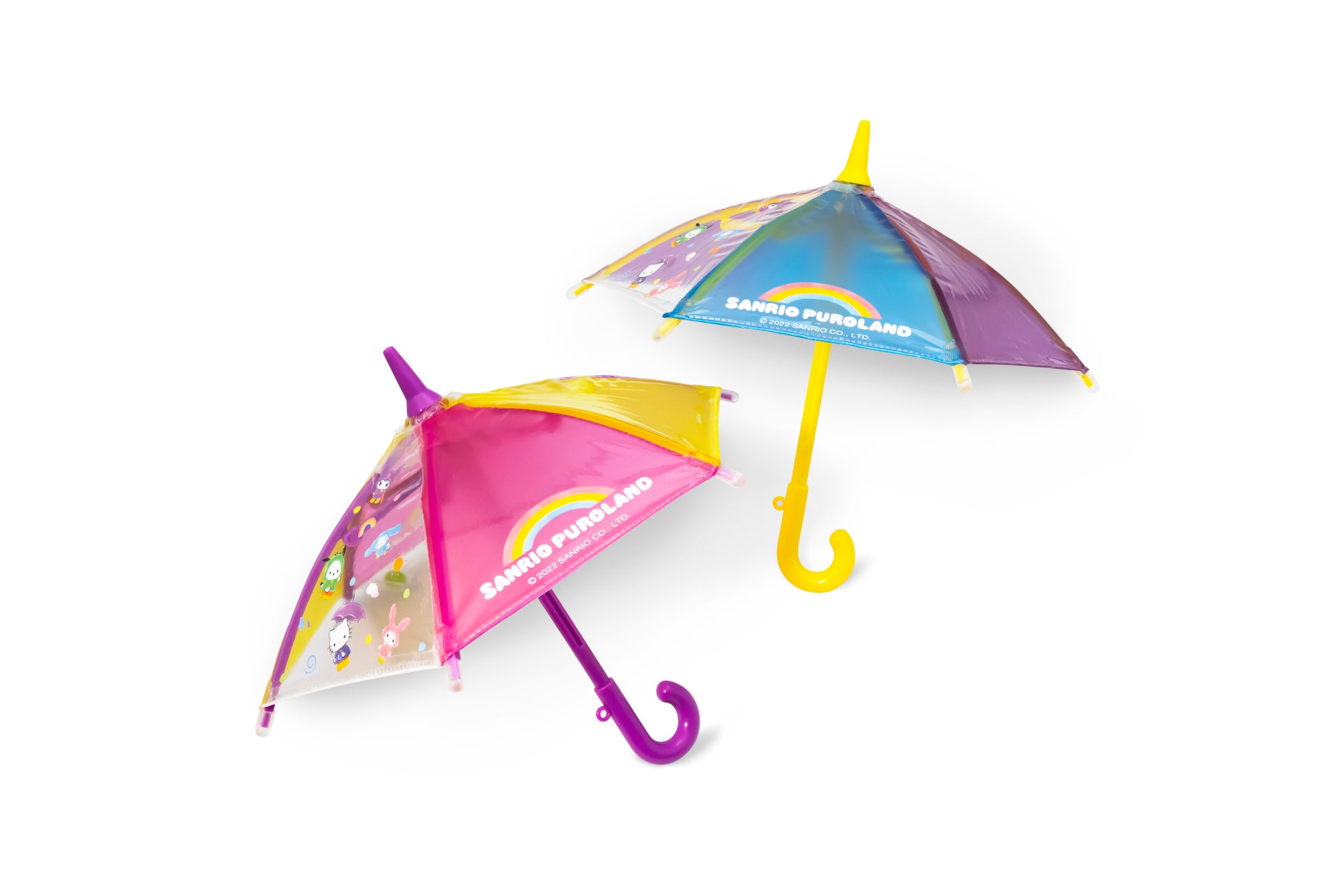 パレードをより一層楽しめる盛り上げグッズの販売も決定。キャラクターとおそろいのミニサイズの傘「アンブレらん♪(全2種・各600円) 」やアンブレらん♪につけられるオリジナルチャーム「アンブレらん♪用チャーム(全9種・各300円)」も販売いたします。傘型の盛り上げグッズを持って一緒に踊りながら「虹ド」を盛り上げましょう。