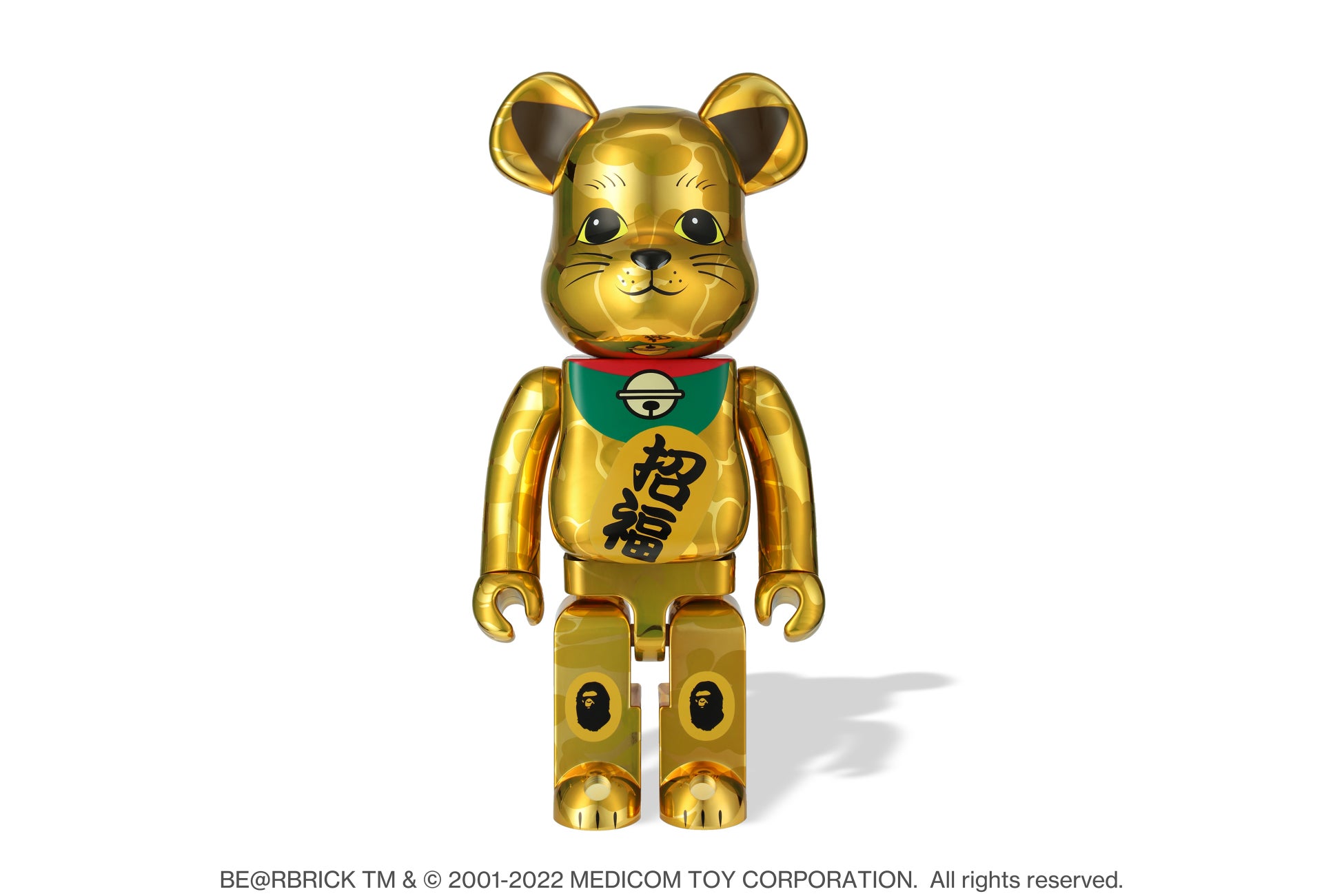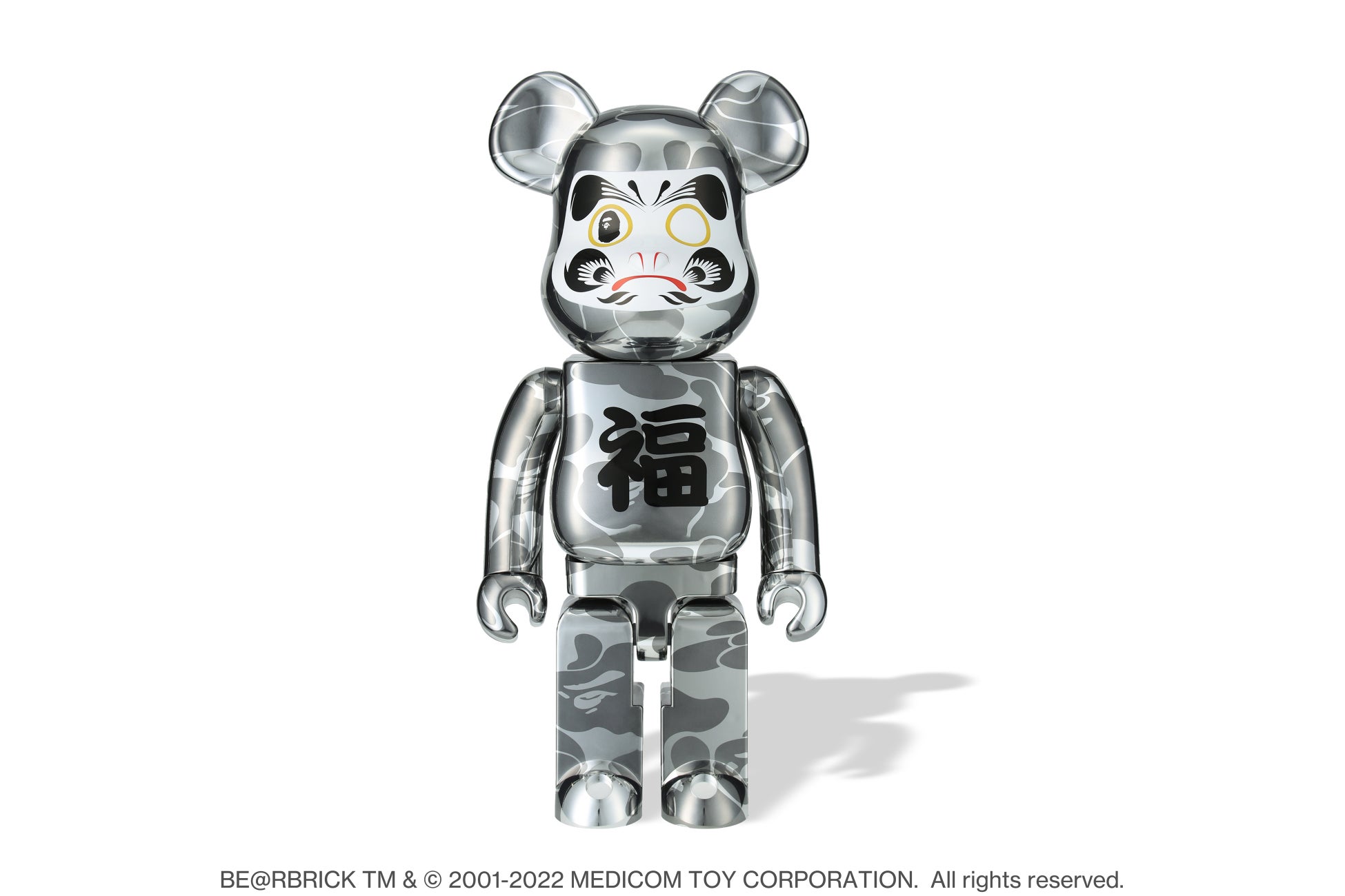 今回発売されるのはゴールドとシルバーを全身にまとったカラーリングで、新春に相応しい華やかなデザインで、それぞれの BE@RBRICK のボディには、BAPE® CAMO が全面にプリントされており、遊び心溢れたアイテムに仕上がっています。新年の招福祈願や祈願成就の縁起物としても、コレクターズアイテムとしてもおススメです。