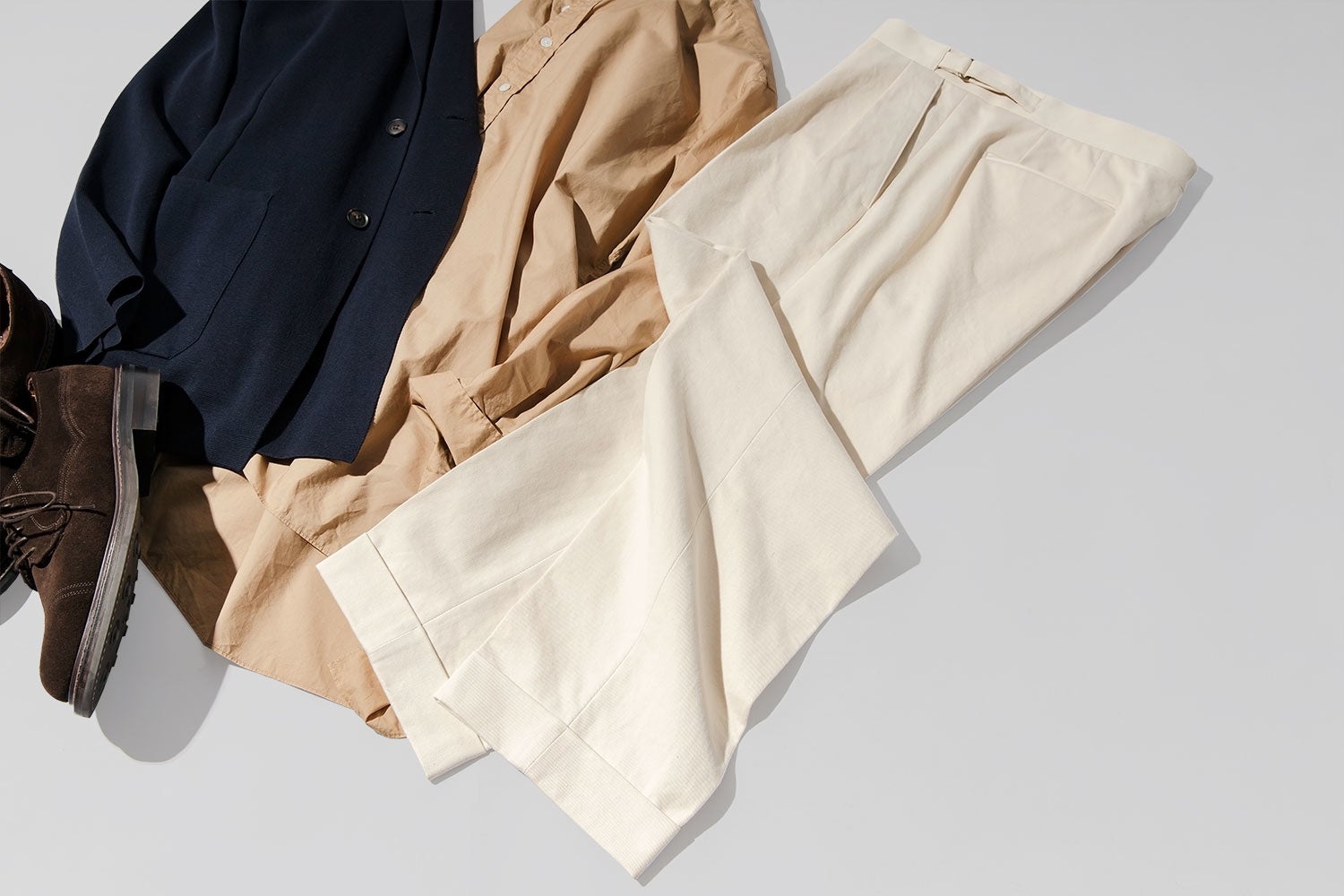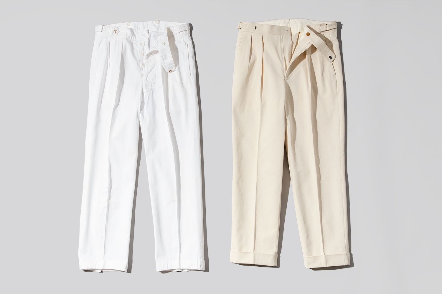 ブリティッシュメイド オリジナルオフィサーパンツ「ポーツマス」の第二弾は通年使える“生成り”カラー! スタイリスト四方章敬 監修