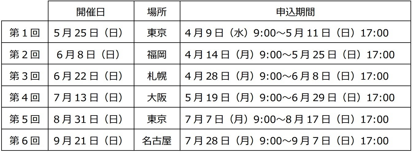 ・都合により会場・開催日を変更する場合がございます。お申し込みの際は、会場・開催日を必ずご確認ください。
