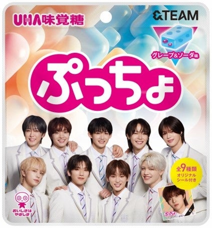 \&TEAMのキュートでクールな表情が楽しめる2種類のパッケージデザイン!オリジナル おまけシール付き!/UHA味覚糖「ぷっちょ&TEAM グレープ&ソーダ味」2024年5月27日より全国発売!