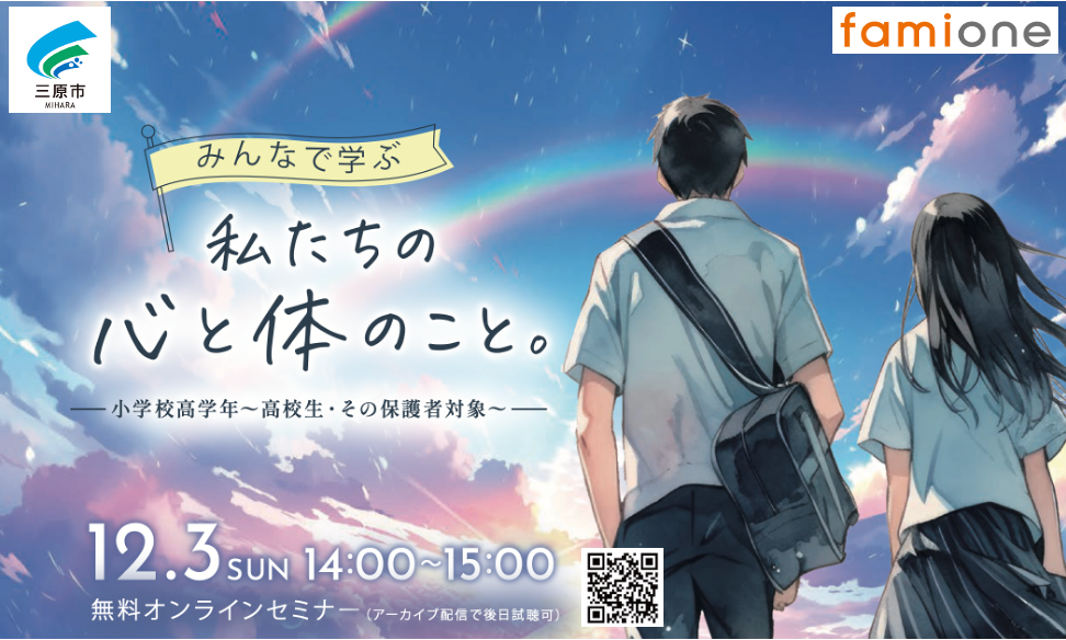 広島県三原市健康LINEサポート事業の一環として、小学校高学年〜高校生・保護者向け性教育セミナーを12月3日にオンライン開催します