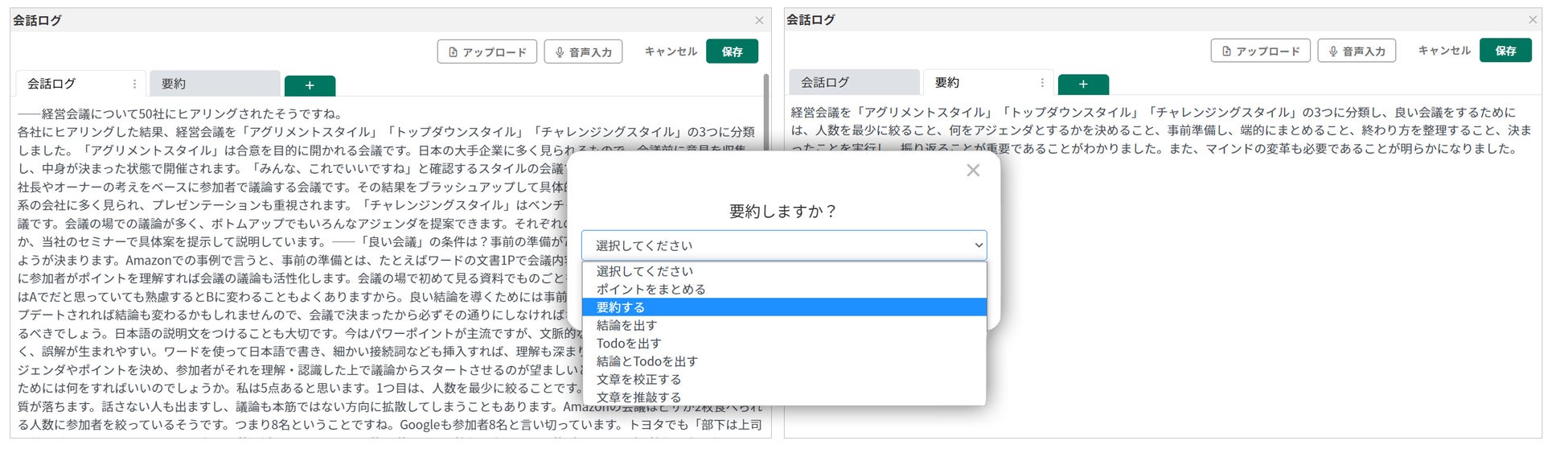 1)最大2,000文字の議事録を約30秒で要約