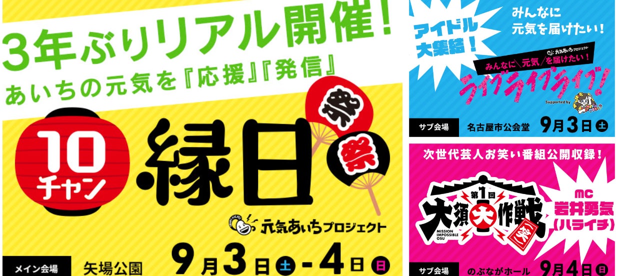 「テレビ愛知 10チャン縁日」 9月3日(土)・4日(日) 名古屋・栄の矢場公園で開催!