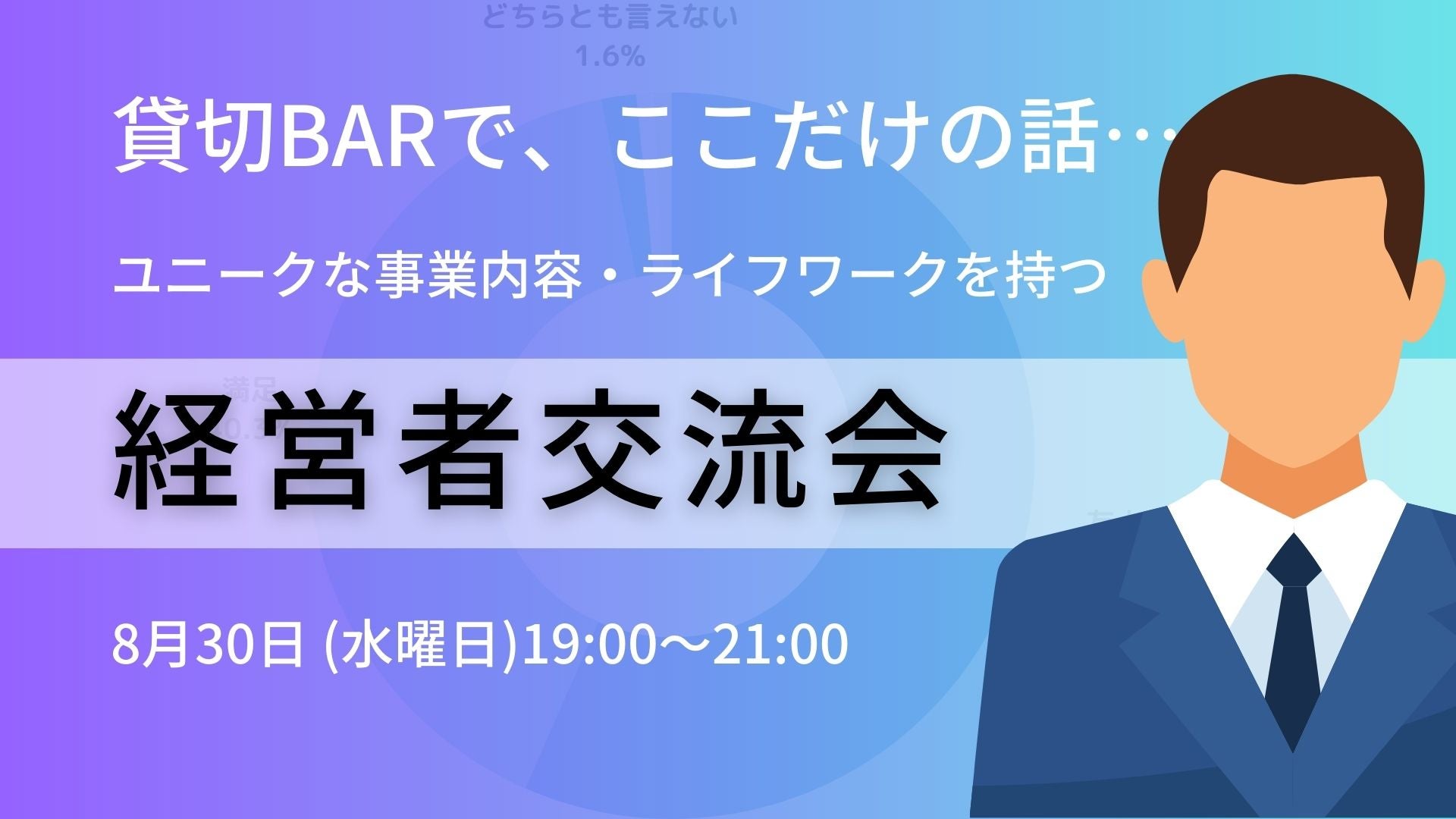 8月30日 (水)19:00〜 BAR貸切・経営者向けイベント開催。ユニークな事業内容・ライフワークを持つ経営者会