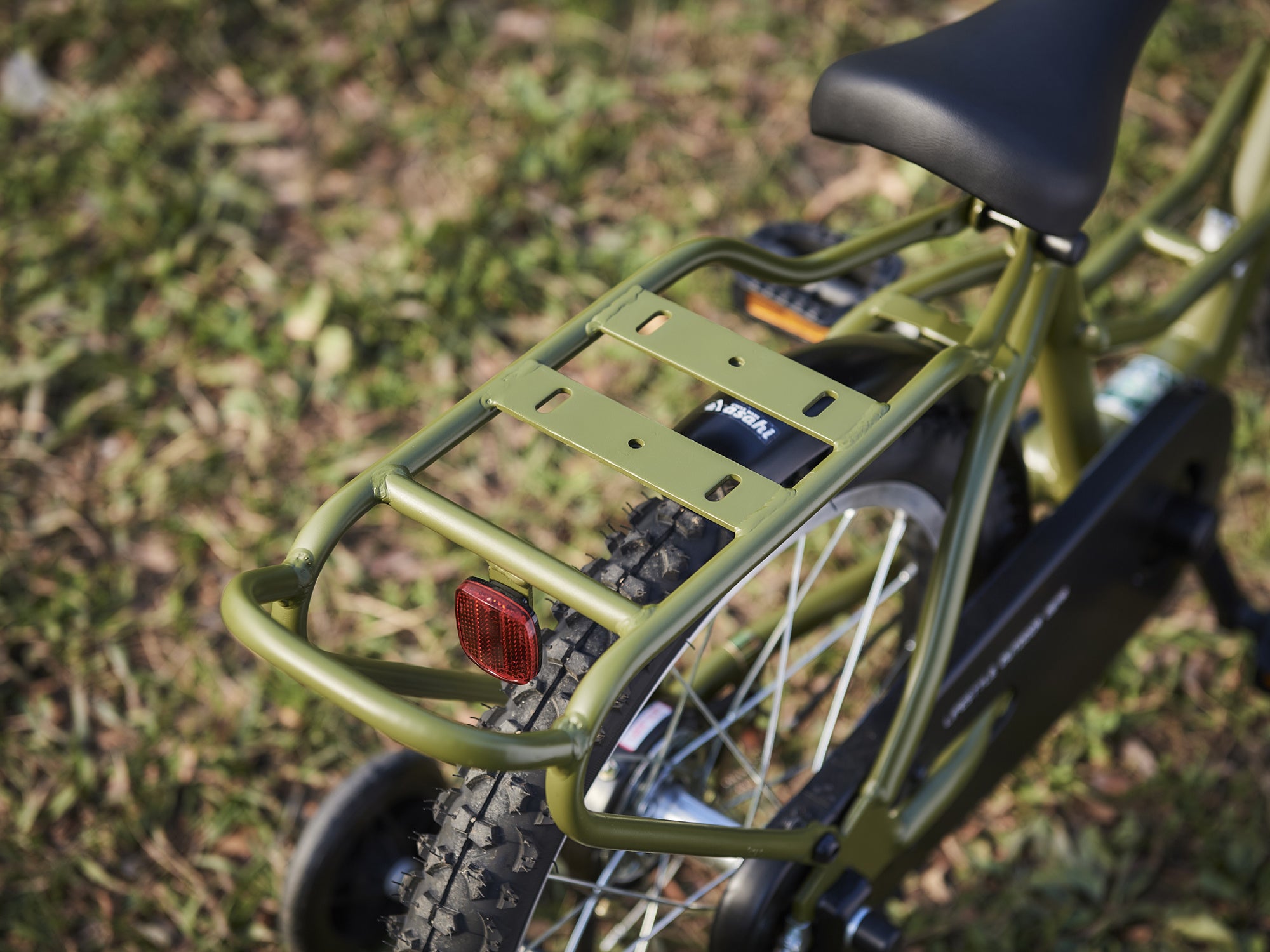 お子様の自転車練習サポートにも便利な持ち手付きのリアキャリアを採用。