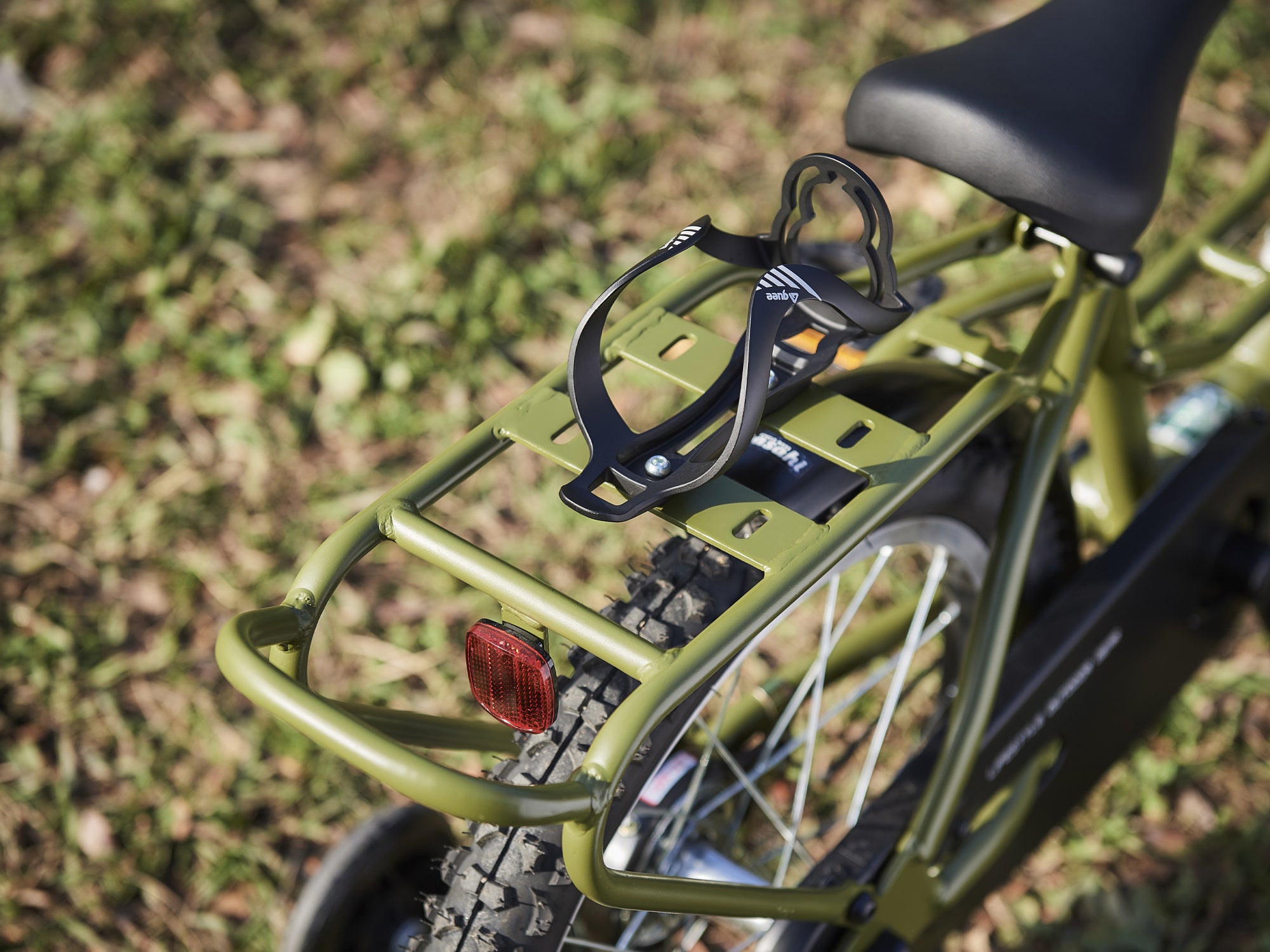 リアキャリアにはダボ穴があり、ボトルケージの取り付けが可能。
