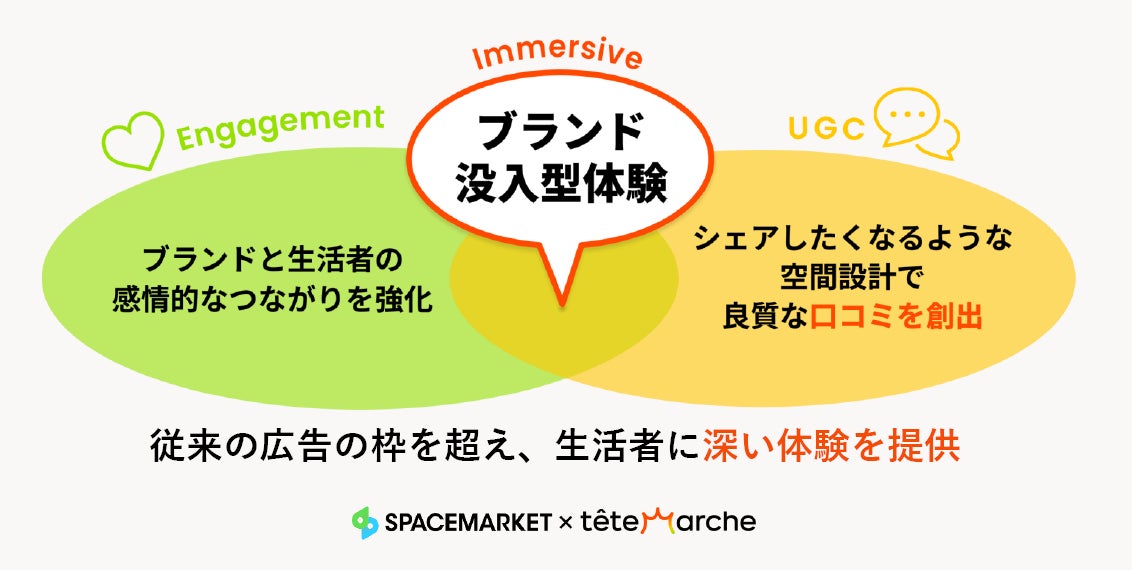あらゆるスペースを貸し借りできるマーケットプレイス「スペースマーケット」を運営する株式会社スペースマーケット(本社:東京都渋谷区、代表取締役社長:重松大輔、以下、スペースマーケット)は、企業向けSNSマーケティング支援を展開するテテマーチ株式会社(本社:東京都目黒区、代表取締役:上田 大介、以下テテマーチ)と業務提携いたします。この提携により、ブランドとファンのより深い関係構築と、場所を通した新しい体験価値の創出を最大化する新たなプロモーション手法「ブランド没入型型体験プロモーション」の提供を開始いたします。