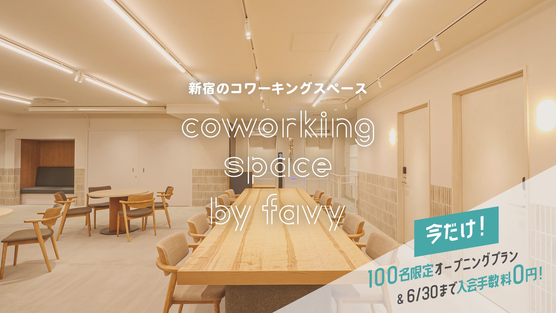 新宿駅徒歩5分、法人登記・住所利用可能な『コワーキングスペース by favy』オープン!6月末まで入会事務手数料最大10万円が無料に