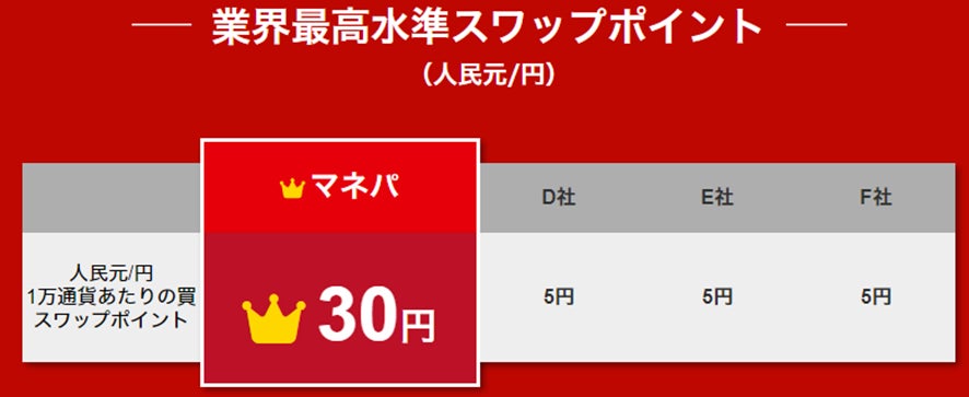 - マネパの人民元/円はスワップポイントも業界最高水準!