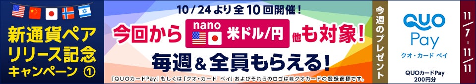 「新通貨ペアリリース記念キャンペーン お取引1回でデジタルギフトをプレゼント」