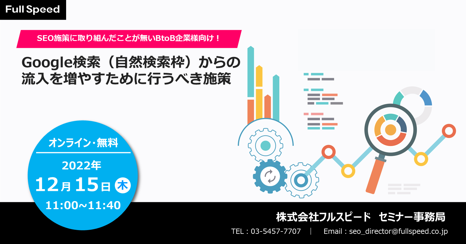 TEL:03-5457-7707 | Email:seo_director@fullspeed.co.jp | WEBマーケティング部 セミナー事務局