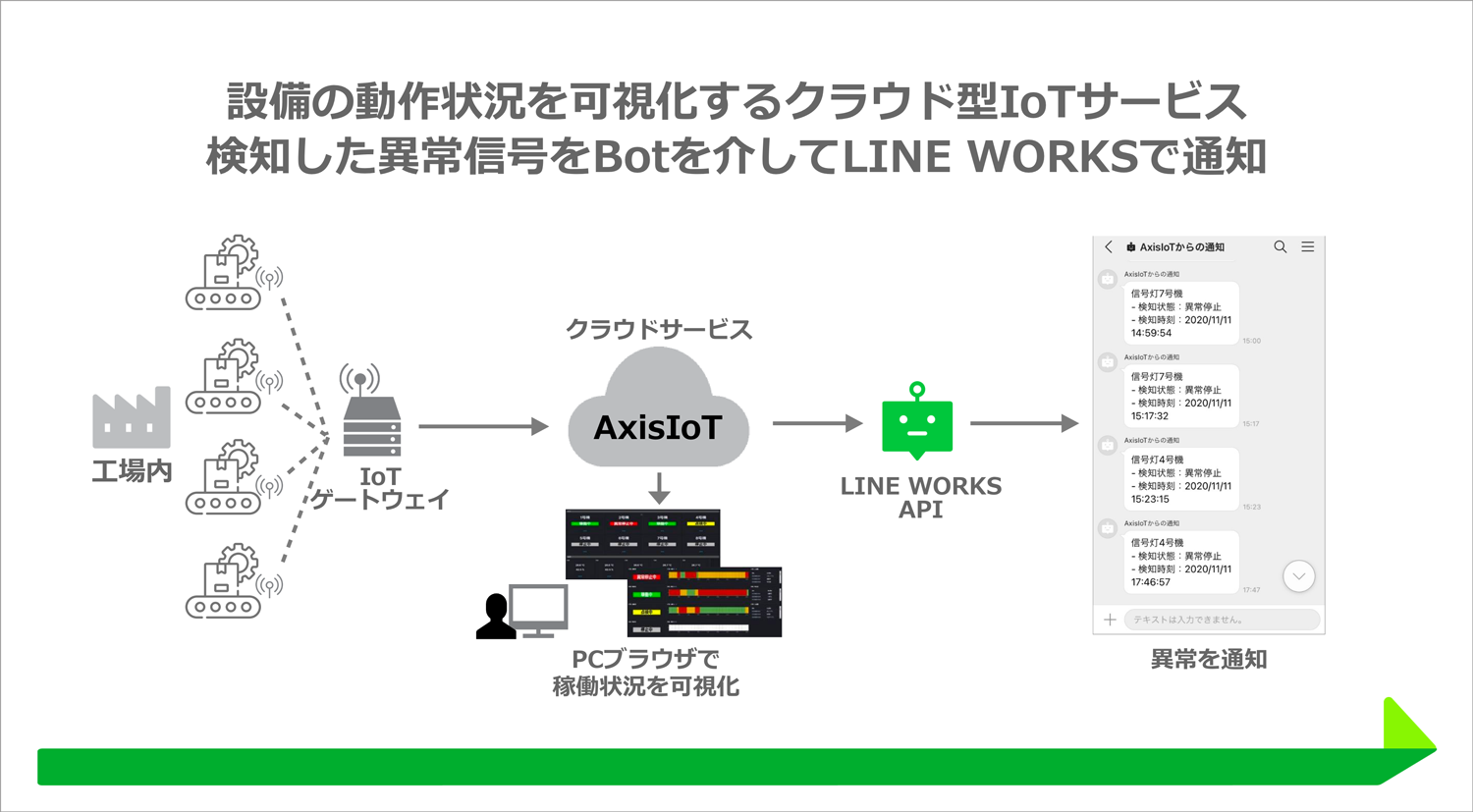 工場の設備稼働状況の可視化・分析を実現できるIoTクラウドサービス「AxisIoT」と「LINE WORKS」が連携を開始