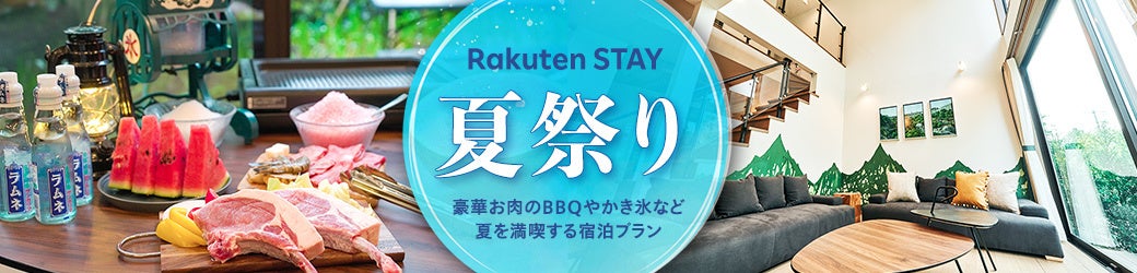 「Rakuten STAY VILLA 箱根仙石原」「Rakuten STAY VILLA 富士山中湖」「Rakuten STAY 日光宝殿」の3施設では、期間限定の「夏祭りプラン」を発売しています。通常よりも豪華な食材でBBQが楽しめる食事や、ふわふわのかき氷が簡単に作れる電動かき氷機が利用でき、家族旅行やグループ旅行で夏を満喫できるプランとなっています。さらに、当プラン宿泊者限定で、楽天の公式キャラクター「お買いものパンダ」のイラストをあしらったうちわも提供します。