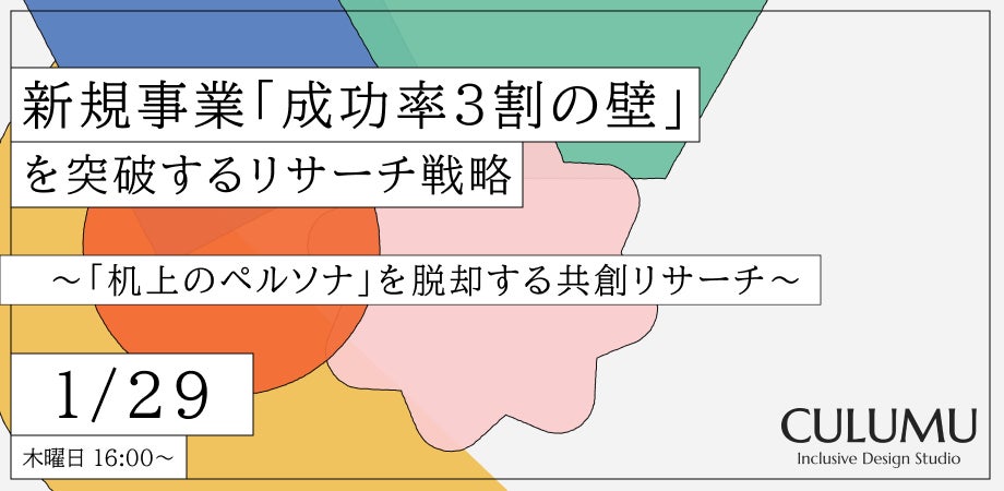 インクルーシブデザインスタジオCULUMU(運営:株式会社STYZ、本社:東京都渋谷区、代表取締役:田中辰也、以下「CULUMU」)は、オンラインセミナーを2026年1月29日(木)16時00分から開催します。