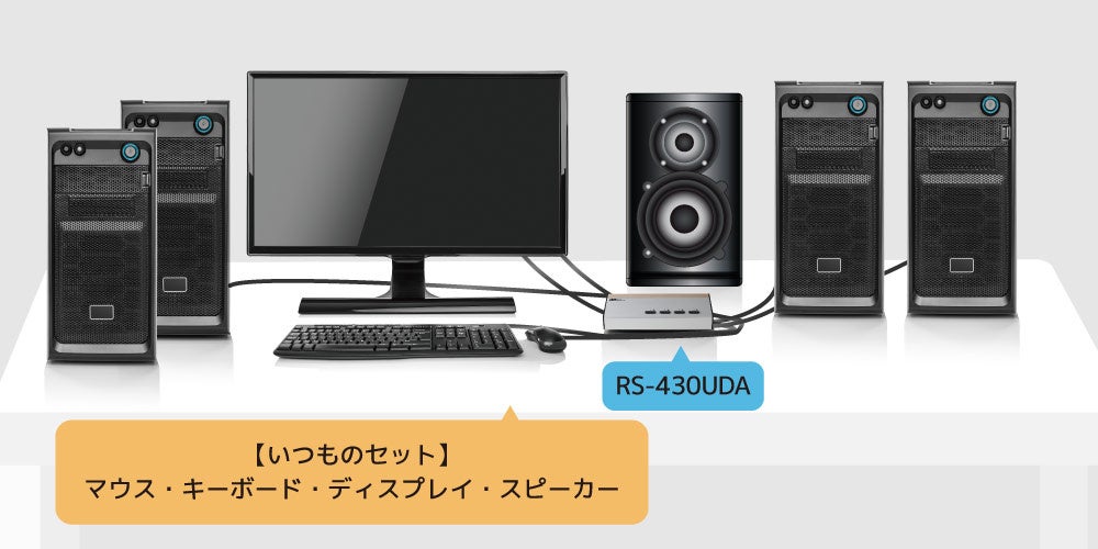 RS-430UDAは、キーボード・ディスプレイ・マウスを最大4台のパソコンで切り替えて操作できる切替器です。