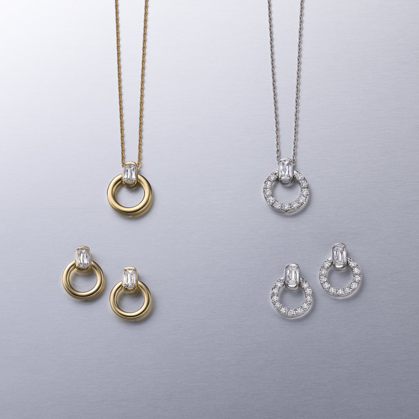 ドアノッカーからインスパイアされたデザイン。アショカダイヤモンドを起点に下の輪が動く仕様になっています。新たな扉を開けて、未来に踏み出そうとする人の気持ちを後押しするアミュレットジュエリーです。