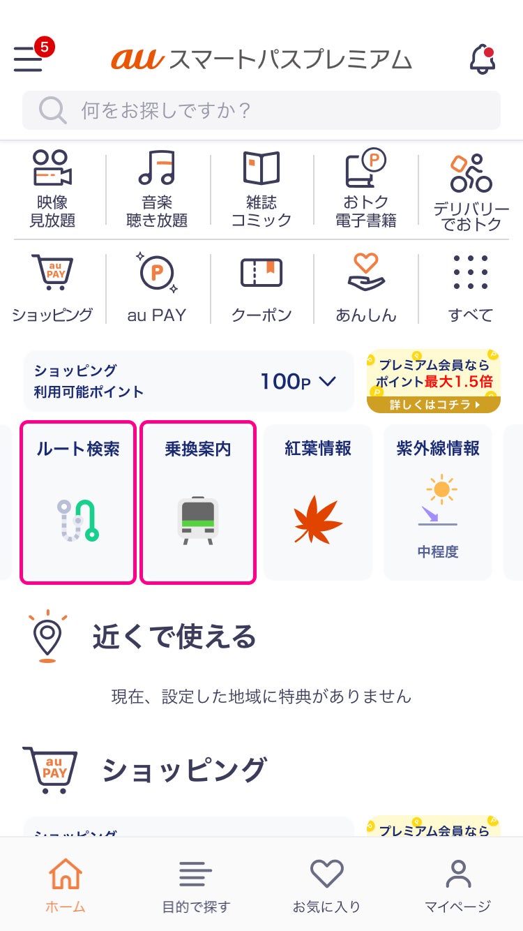 ※KDDI株式会社の提供する「au スマートパス」アプリ内の「乗換案内」「ルート検索」カードからご利用いただけます。ご利用にあたり、「au スマートパス」の会員登録が必要です。