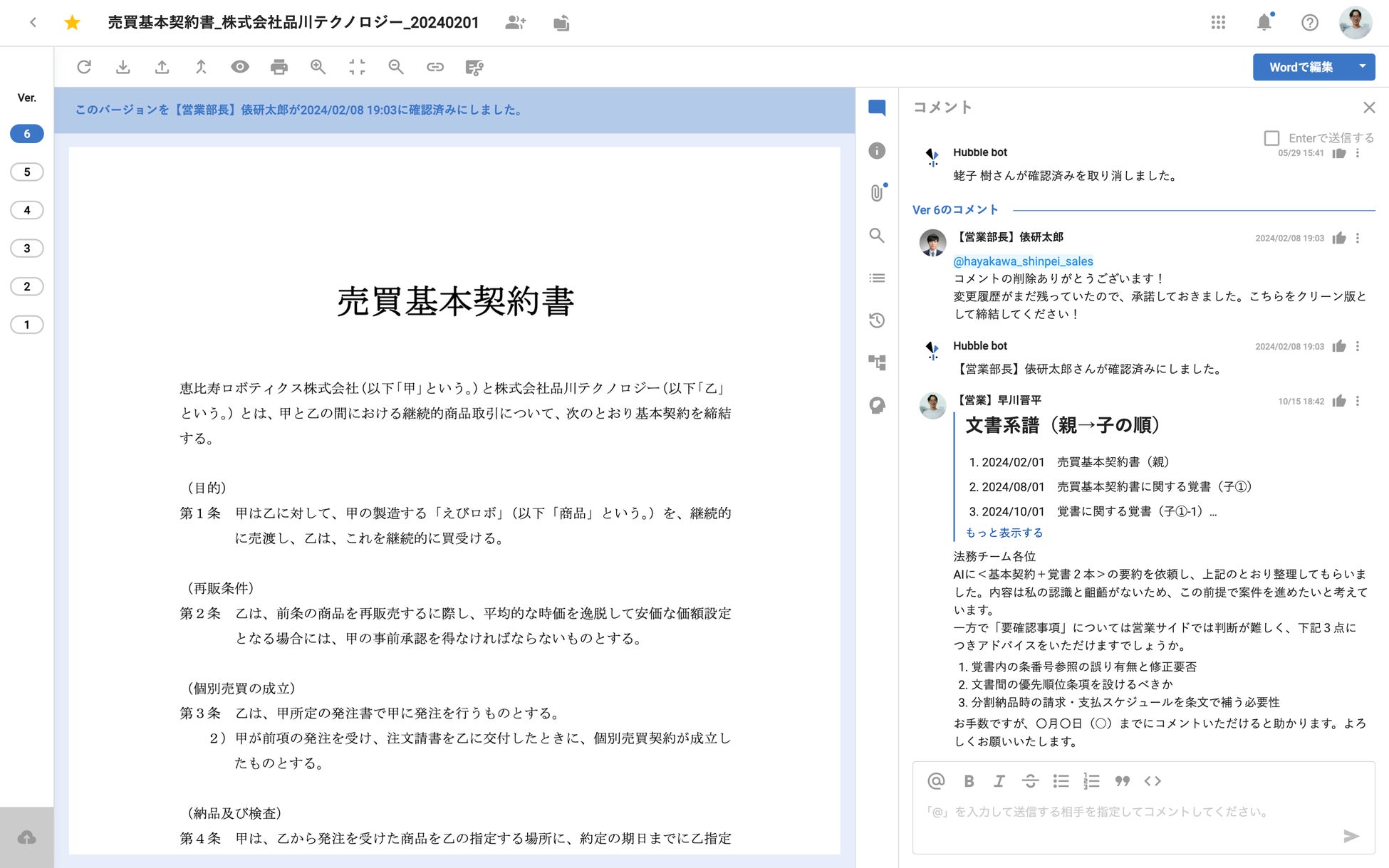 契約業務・管理クラウドサービス「Hubble(ハブル)」を提供する株式会社Hubble(本社:東京都渋谷区、CEO:早川 晋平、CTO:藤井 克也、CLO:酒井 智也)は、契約業務フローの進行や意思決定を支援する契約AIエージェント「Contract Flow Agent(コントラクト・フロー・エージェント、以下CFA)」の新機能として、「AIコメント引用機能」を2025年10月20日(月)に正式リリースしたことをお知らせします。