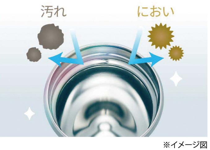 ボトルの内面には、なめらかで光沢のあるスーパークリーンPlus加工を施しました。汚れ・においがつきにくく、サビにも強いので塩分を含むスポーツドリンクを入れてもOK。