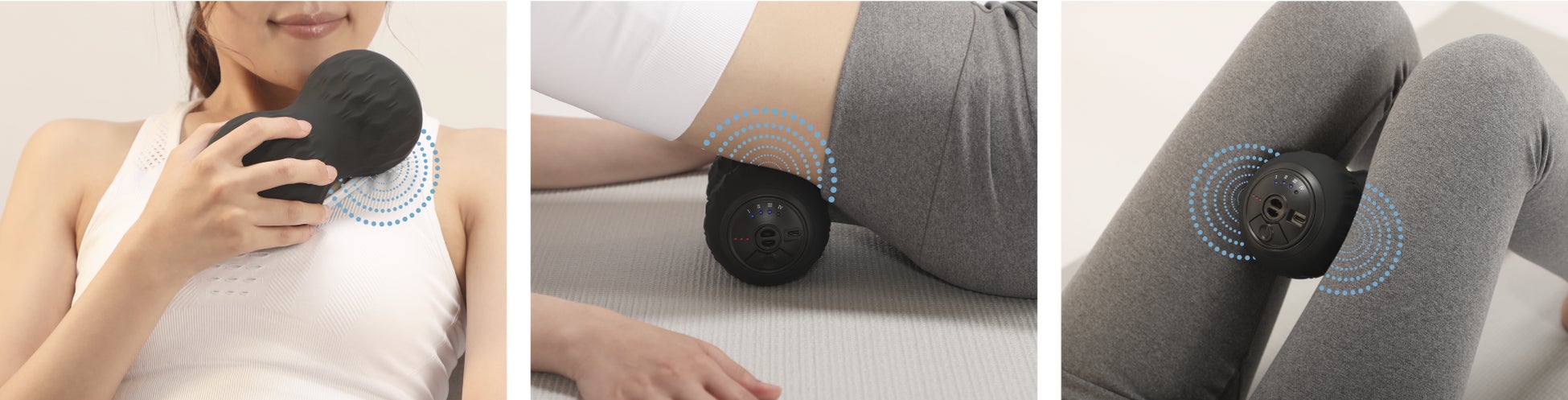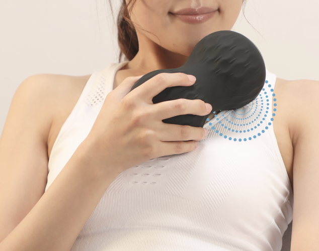 背中や腰などの広い面は、2つのふくらみがフィット。シングルのボールタイプよりも体にあたる部分が多く、効率的に振動が伝わります。くぼみ部分は、柔らかな曲線で包むように腕や脚にフィットして、より深く振動を伝えます。